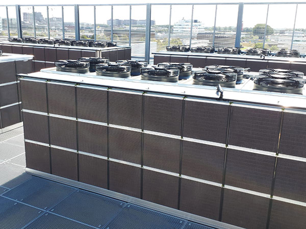 الشمس أيضا لا تؤثر على أداء المبردات حيث حرصنا على تأمين بيئة مظللة تمامًا حول الوحدة ما يخلق وسطاً منخفض الحرارة ويقلل من الضغط الحراري على المكونات